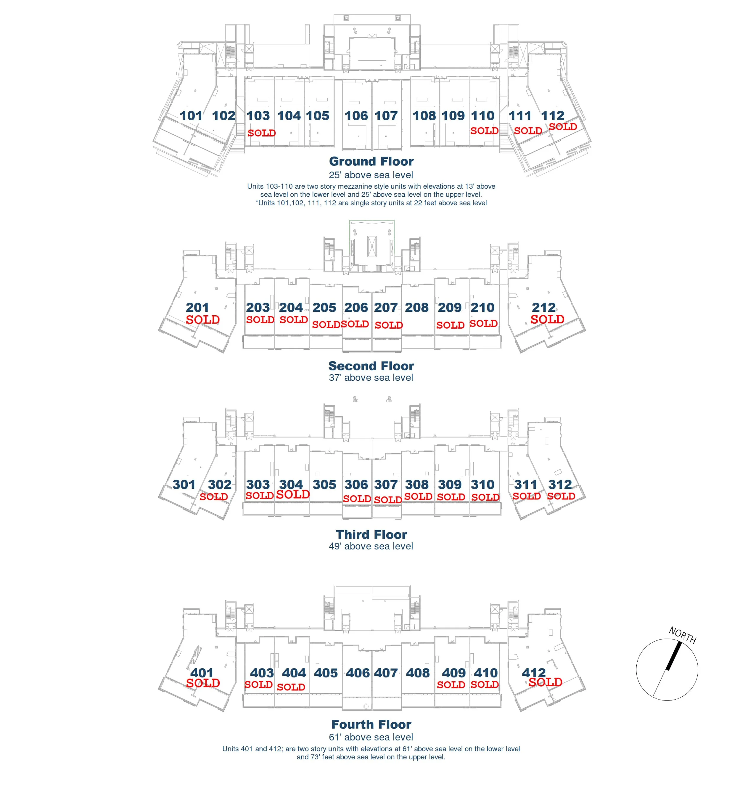 -Unit numbers: 103(sold), 105, 1O7, 109 and mirrored 104, 106, 108, 110(sold)